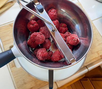 For juicing I used a simple food processor which I also use for pomegranate arils and cut tomatoes. The solids and seeds stay in the crushing bowl, and the juices drain to the large bowl placed under the processor, see the pictures below.